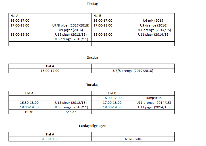 Træningstider 2025/2026